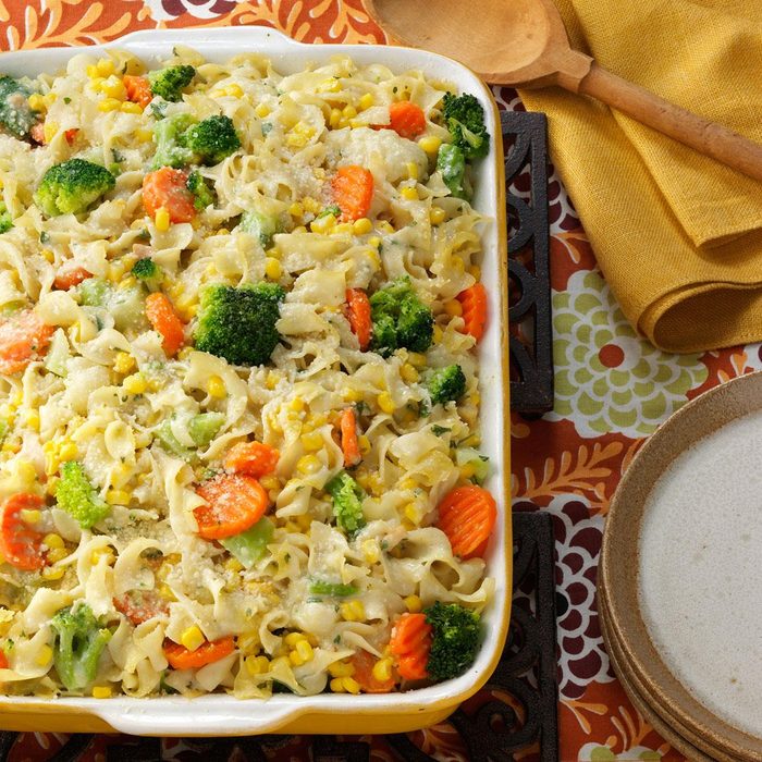 This filling side dish goes great with grilled meats. Use your favorite mix of veggies, but don’t forget to add the extra corn.