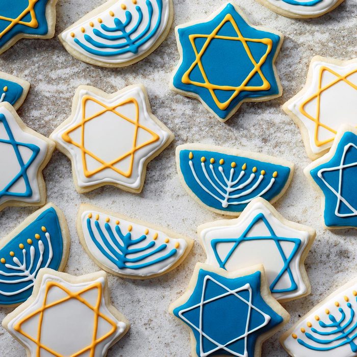 These Hanukkah-themed cookies are perfect for celebrating the Festival of Lights. Made with cream cheese and topped with buttercream frosting, these rich cookies should definitely be in your annual Hanukkah desserts rotation. Get the whole family involved in frosting and decorating them.