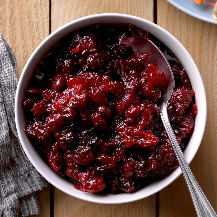 Cranberry fans will ask for this sauce again and again. It's loaded with their favorite fruit—in fresh, dried and juice form. Orange and allspice make it awesome. —Arlene Smulski, Lyons, Illinois