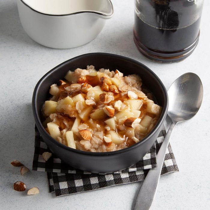 Add extra nutrition to fiber-rich oatmeal by adding chopped apple and almonds. My two boys demand seconds! At 1-1/2 cups per serving, it’s hearty and filling; and at zero cholesterol, what’s not to love? —Danielle Pepa, Elgin, Illinois