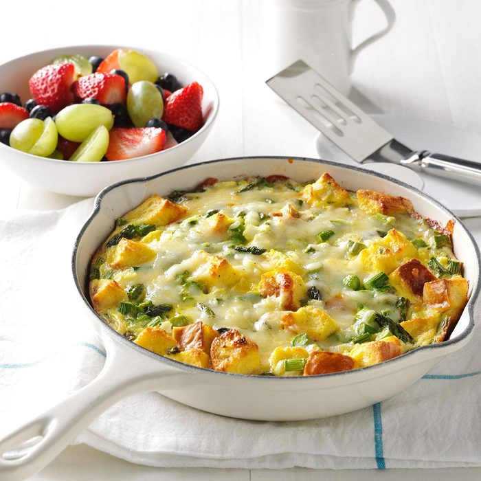 From the Recipe Creator: This rich and creamy frittata begins in the skillet and ends in the oven. We like this melty, cheesy dish with salad on the side. —Gilda Lester, Millsboro, Delaware