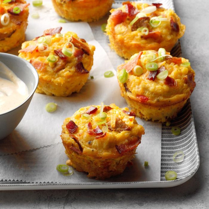 4 mini muffins: 234 calories, 10g fat (3g saturated fat), 45mg cholesterol, 560mg sodium, 26g carbohydrate (9g sugars, 1g fiber), 10g protein. Diabetic exchanges: 1-1/2 starch, 1 medium-fat meat, 1/2 fat.
