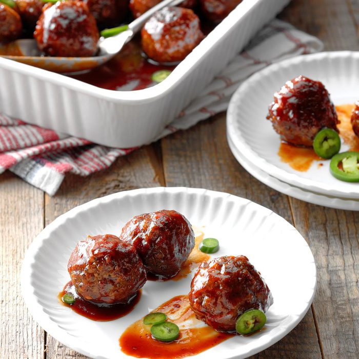 As a writer and busy mom of three boys, I need tasty meals on the quick. We serve these glazed meatballs over a steaming bed of rice. —Amy Dong, Woodbury, Minnesota