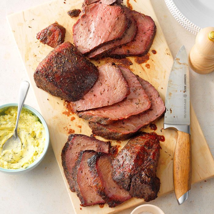 From the Recipe Creator: If you're looking for a flavorful cut of meat that's still pretty lean, give this sirloin tip roast a try. I like to cook it slowly over indirect heat, mopping it frequently with red wine sauce. —James Schend, Pleasant Prairie, Wisconsin