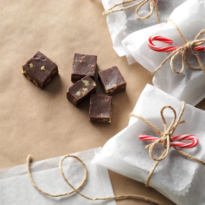 Anyone who's fond of chocolate will like this smooth, nutty fudge twice as much. I enjoy making several batches when Christmas rolls around. It doesn't last long at our house during the December festivities! —Florence Hasty, Louisiana, Missouri