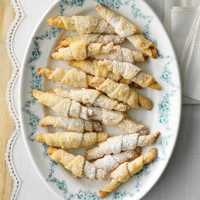 My family has been making these delicate, fruit-filled Italian horn cookies for generations. They’re light and flaky, with the look of an elegant old-world pastry. —Gloria Siddiqui, Houston, Texas