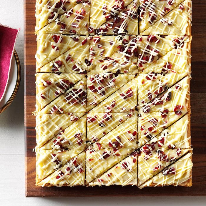 From the Recipe Creator: Friends sometimes ask me to make these for wedding receptions. For a fancier presentation, I cut the bars into triangle shapes and drizzle white chocolate over each one individually. —Erika Busz, Kent, Washington