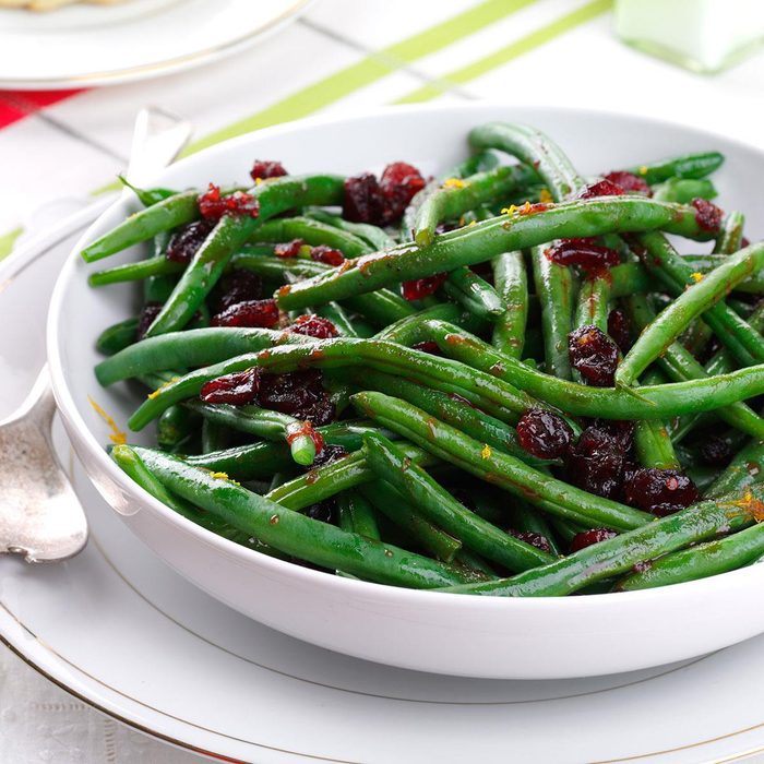 Green beans are a popular vegetable in our house. They get a nice zing from this slightly tangy glaze featuring fruit juices, vinegar, maple syrup and seasonings.—Geraldine Saucier, Albuquerque, New Mexico