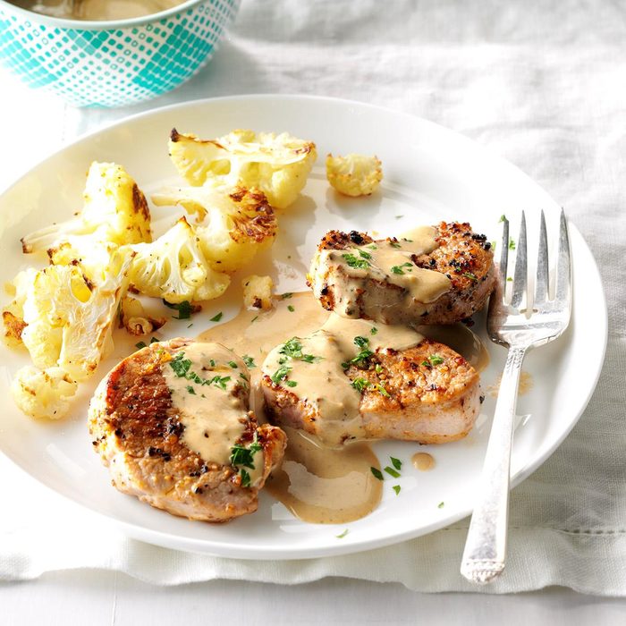 This comforting pork dish feels fancy, thanks to the creamy sauce kicked up a notch by blue cheese. Guests go crazy over it and never guess how quickly it all comes together. —Lynne German, Woodland Hills, CA