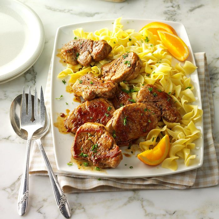 This easy treatment for pork caught my eye when I was paging through a cookbook and saw the word “caramelized.” The slightly sweet glaze is yummy. I like to serve this over noodles or rice or with mashed potatoes. —Elisa Lochridge, Beaverton, Oregon