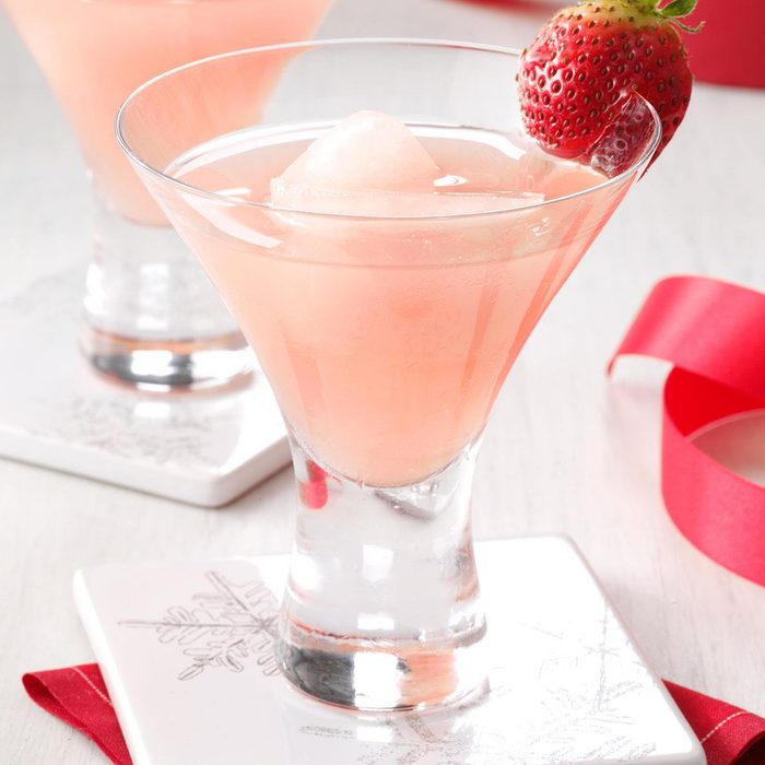 Why reserve lemonade and strawberries for the summertime? They’re just as refreshing during the holiday season. Add two more ingredients to create a crowd-pleasing cocktail.