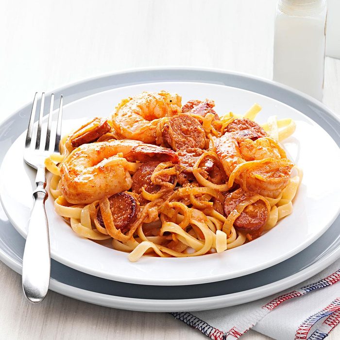 We enjoy andouille sausage with pasta; now change up the usual Scampi by turning andouille into a butter sauce. —Judy Armstrong, Prairieville, Louisiana