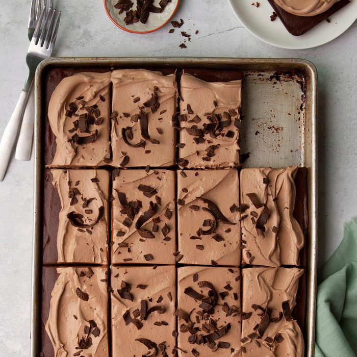 This moist and delicious chocolate cake is usually the first dessert to go. People even eat the crumbs. It’s always my top choice for holiday dinners. —Ellen Riley, Murfreesboro, Tennessee