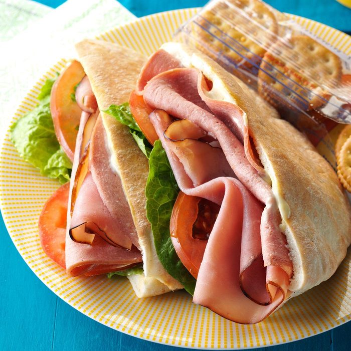 Here’s a guaranteed table brightener. Just stand back and watch these sandwiches vanish. For an eye-catching presentation, I tuck each one into a colorful folded napkin. —Roxann Parker, Dover, Delaware