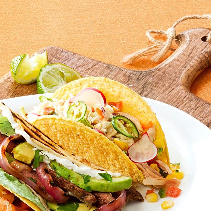 Chop, chop...or not. These tacos are easy on the cook with ready-to-use produce, pico, dressing and cheese. Thinly slice the radishes and hot peppers, and your fiesta is ready. —Taste of Home Test Kitchen, Milwaukee, Wisconsin