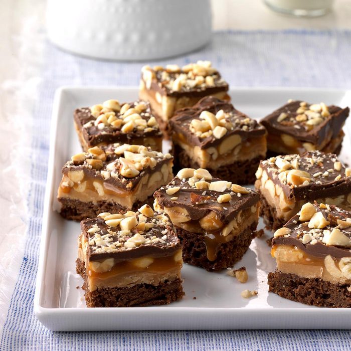 When my husband and our three sons sit down to dinner, they ask, "What's for dessert?" I have a happy group of guys when I report that these rich bars are on the menu. They're chockfull of yummy ingredients. —Lee Ann Karnowski, Stevens Point, Wisconsin