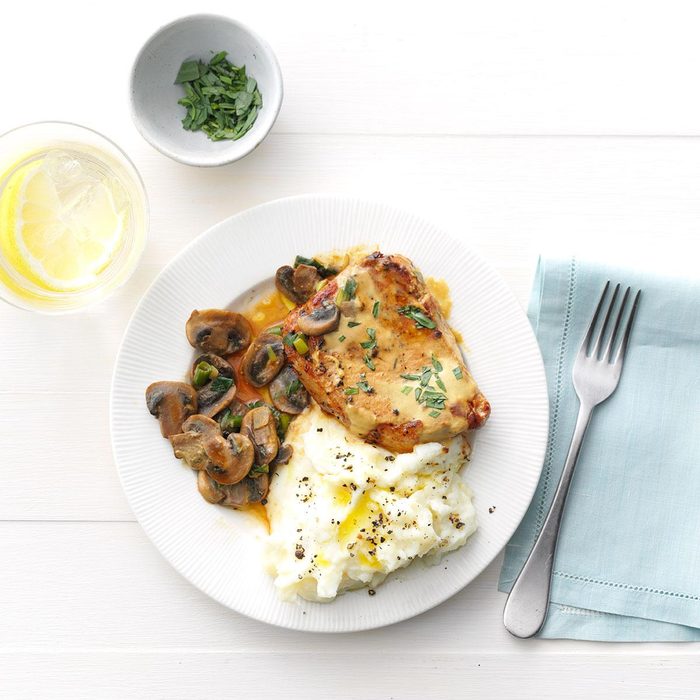 My husband loves pork chops, so I try to find new ways to use them. He calls this version "restaurant quality!" —Nicole Clayton, Prescott, Arizona