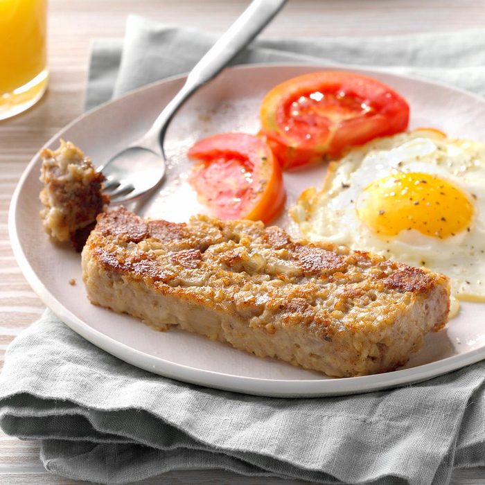 My husband's grandfather, a German, introduced goetta to me when we first got married. I found a slow-cooker recipe and changed some of the ingredients to make this the best goetta around! Now, many people request the recipe. It makes a lot of sausage, but it freezes well. —Sharon Geers, Wilmington, Ohio