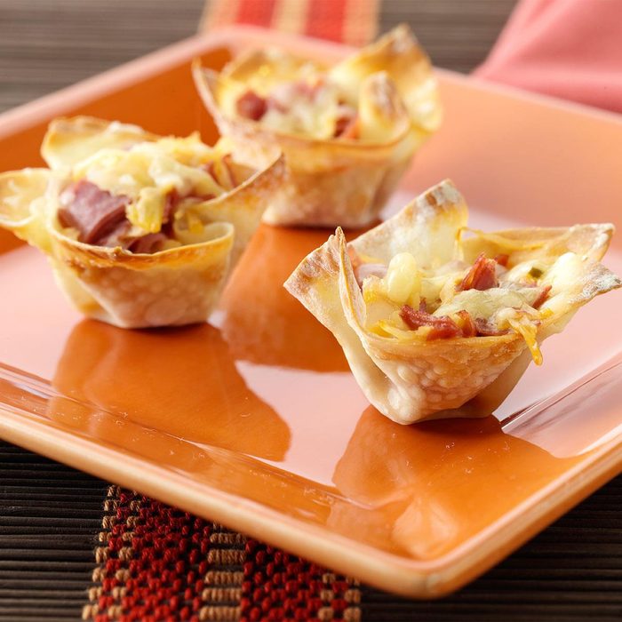 Everyone needs a surefire, grab-and-go tailgate or picnic recipe. Wonton wrappers filled with chicken and spices make flavorful bites for fun on the run. —Heidi Jobe, Carrollton, Georgia