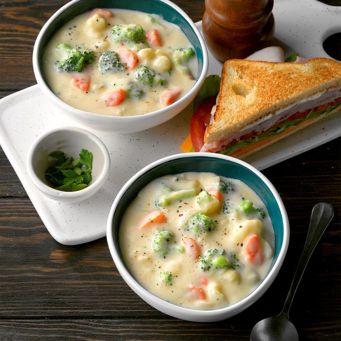 Even my husband, who’s never been a fan of broccoli, likes this creamy soup. It’s a great way to use vegetables from our garden. —Betty Corliss, Stratton, Colorado