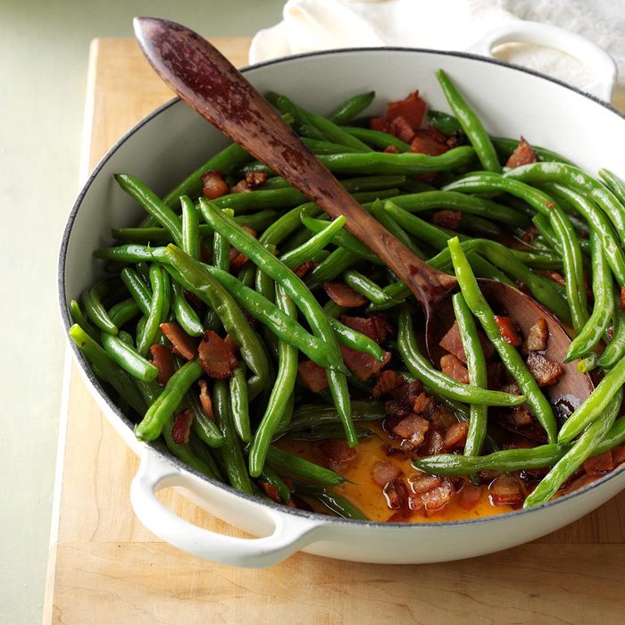 Mom would prepare homegrown green beans using this recipe and, boy, did they ever taste good! The bacon provides rich flavor and the brown sugar a touch of sweetness. This is one irresistible side dish. —Willa Govoro, St. Clair, Missouri