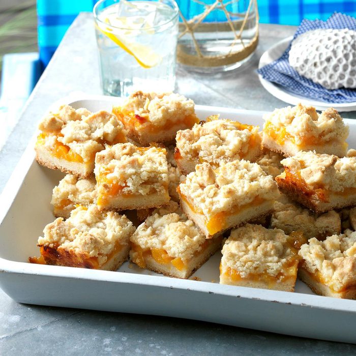 I had the most beautiful peaches and really wanted to bake with them. I started with my blueberry crumb bar recipe, and after a couple of tries, I was so happy with the results. My co-worker taste testers were, too! —Amy Burns, Newman, Illinois