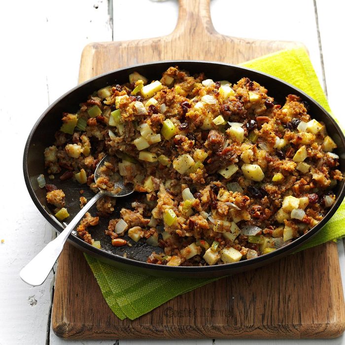 Raisins and tart apples adorn this satisfying sausage stuffing. With the soft bread and crisp apples, you’ll forget about the other side dishes entirely.