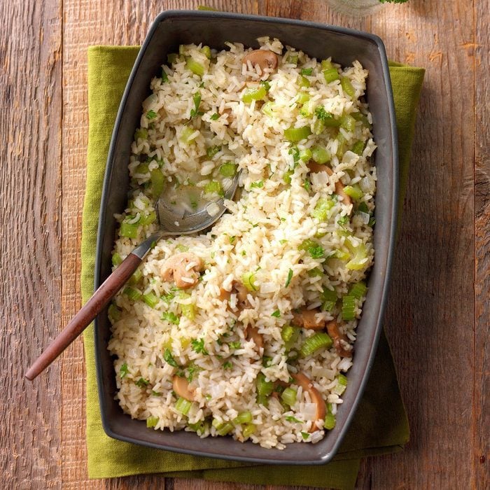 This mushroom and chicken flavored rice dressing is a nice change of pace from traditional bread stuffings. It stays moist and can soak up lots of flavor.