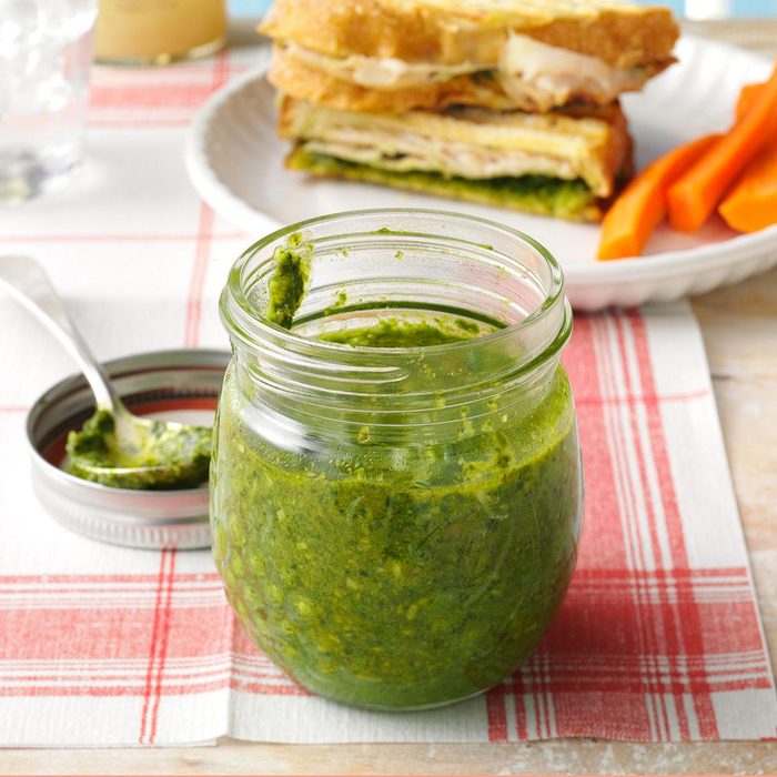 Serve this vibrant pesto on pasta, pizza, sandwiches and more. If you don’t have fresh oregano on hand, you can omit it. —Susan Westerfield, Albuquerque, New Mexico. Here are our favorite spinach pesto recipes.