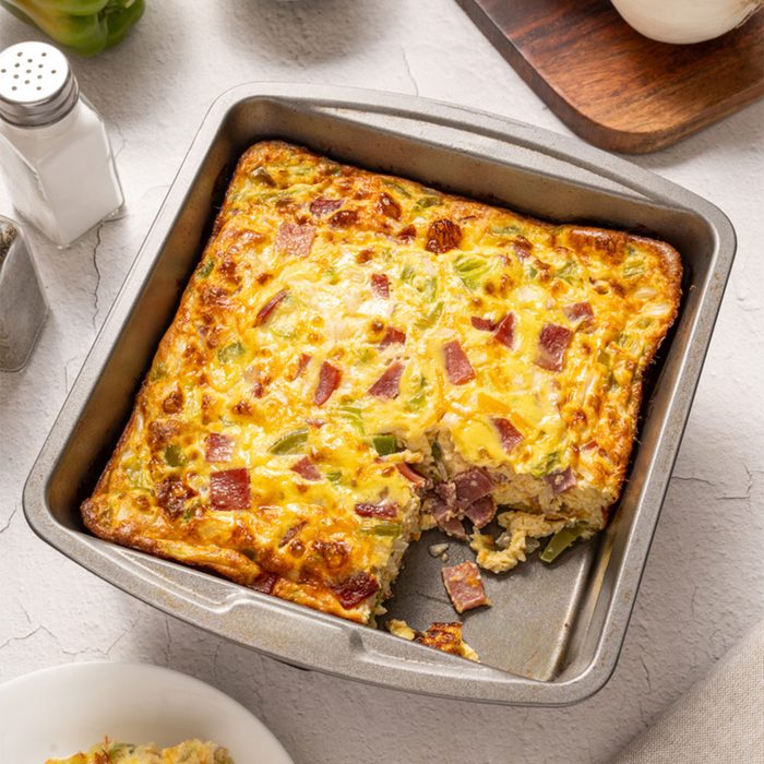 I like omelets but don’t always have time to stand by the stove. That’s why I favor this oven-baked variety that I can quickly pop into the oven at a moment’s notice. My family frequently requests this for Sunday brunch. They always empty the dish. —Ellen Bower, Taneytown, Maryland