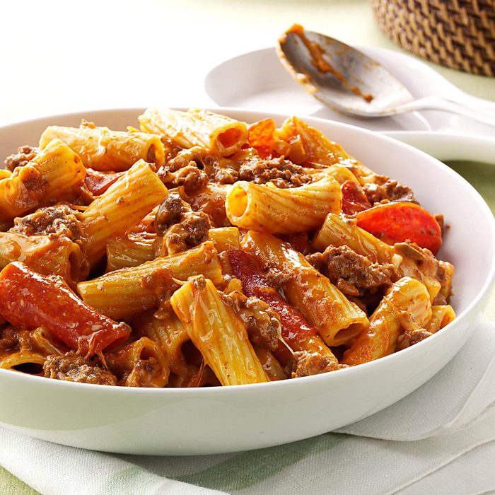I'm a busy nurse, so fast meals are a must. This pasta is a tasty change of pace from potato-ham casseroles. —Kathy Stephan, West Seneca, New York