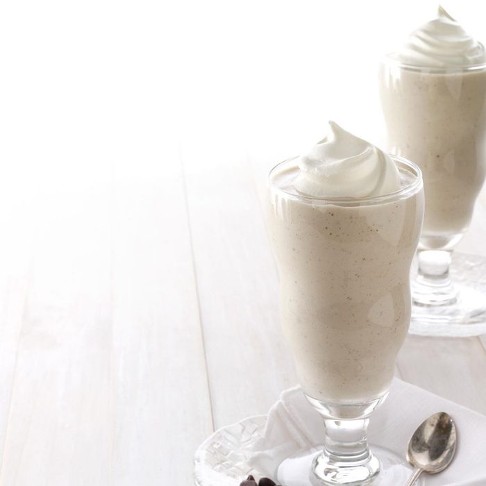 From the Recipe Creator: A few sips of this flavorful shake will curb the hungriest sweet tooth. For a lighter version, substitute a tablespoon of unsweetened cocoa powder for the chocolate chips.—Athena M. Russell, Florence, South Carolina.