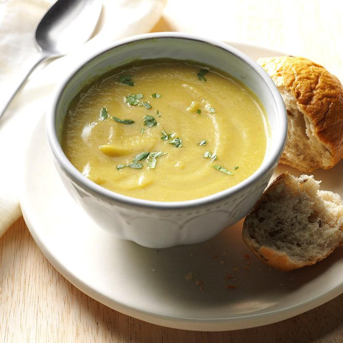 When I'm in need of comfort food, I stir up a velvety batch of this Asian-spiced soup. Then I finish it with a sprinkle of cilantro over the top. —Elizabeth DeHart, West Jordan, Utah