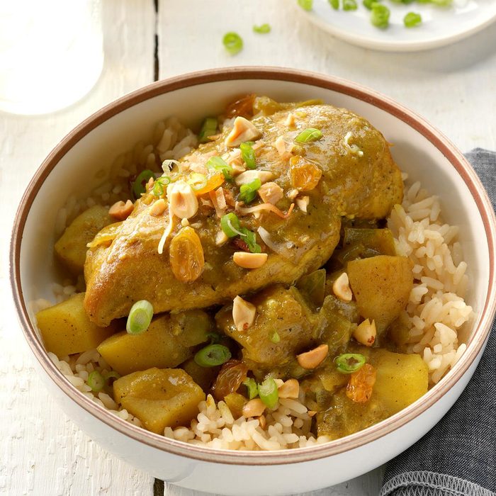 My husband and I love this slow-cooker coconut curry chicken! It’s a breeze to prepare and it tastes just like a meal you’d have at your favorite Indian or Thai restaurant. —Andi Kauffman, Beavercreek, Oregon