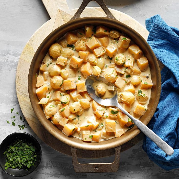 I have made creamed onions for several recent holidays and wanted to change the recipe, so I decided to add celery root. Celery root is perfect with the onions, and the creamy sauce is addicting! —Tina Mirilovich, Johnstown, Pennsylvania