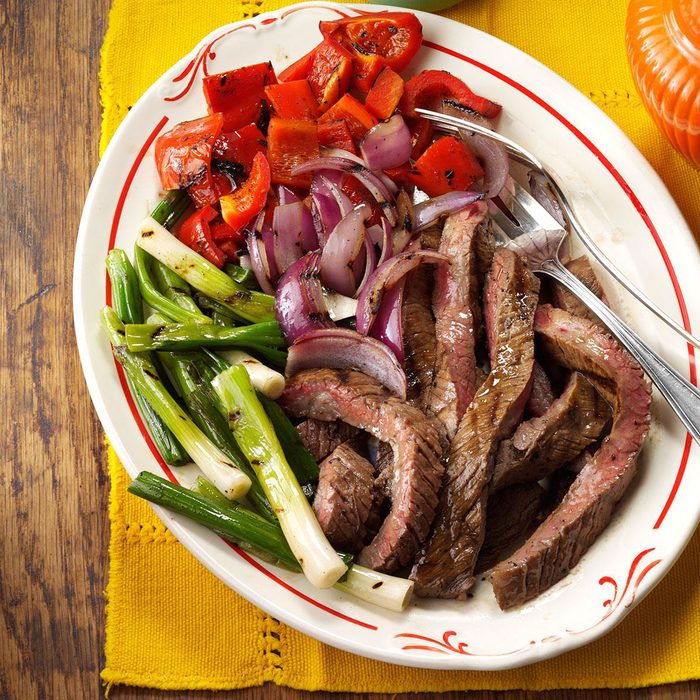 This fun dish is a welcome part of our family cookouts. It makes a quick and delicious steak and vegetable combo that’s ideal for lunch or dinner. —Recipe contributor Cleo Gonske, Redding, California