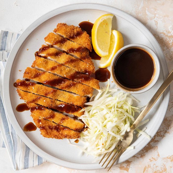 It’s hard to resist the crispy texture of chicken katsu. The chicken is flattened, coated with panko and pan-fried to give it that signature crunch. Serve with steamed sushi rice and a drizzle of sweet and tangy tonkatsu sauce. —Taste of Home Test Kitchen