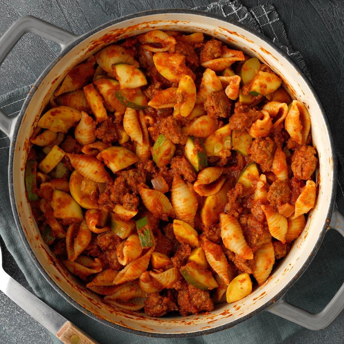 A veggie and pasta combo makes a hearty entree that comes together easily. Wine lends an extra touch of flavor...