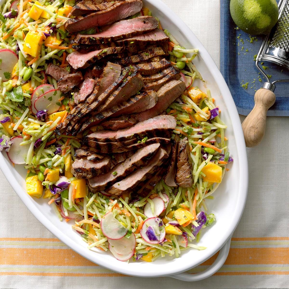 Main-dish salads are so perfect for summer, especially this one with its Asian-inspired dressing. The colorful slaw and juicy steak...