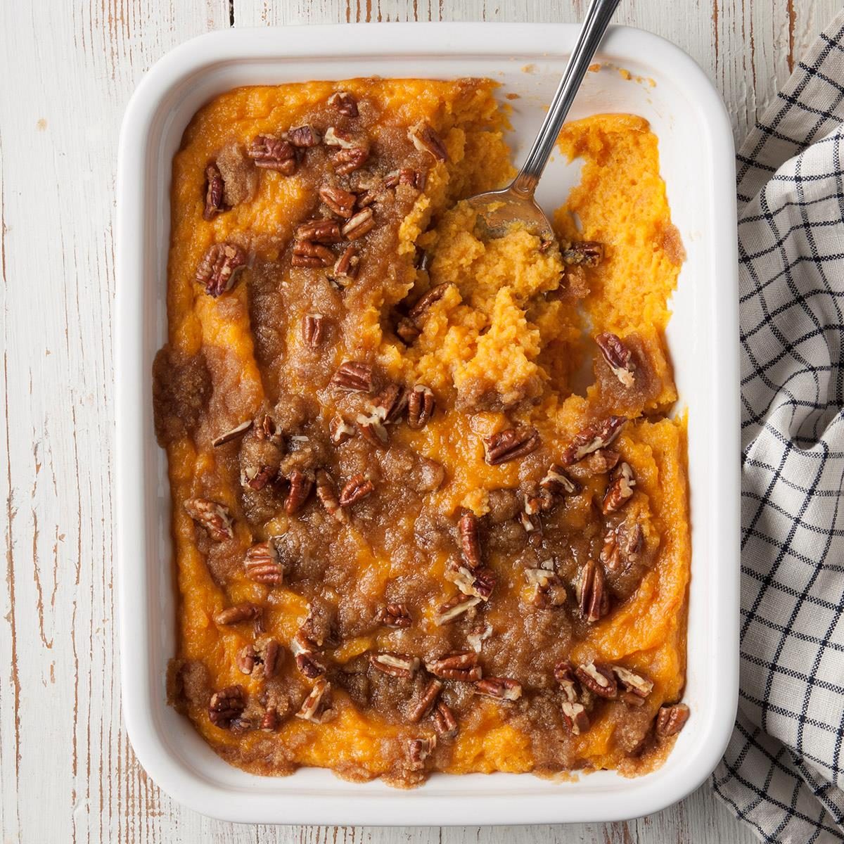 The luscious sweet potato pecan recipe was handed down through my husband’s family, and it’s become a tradition for me...