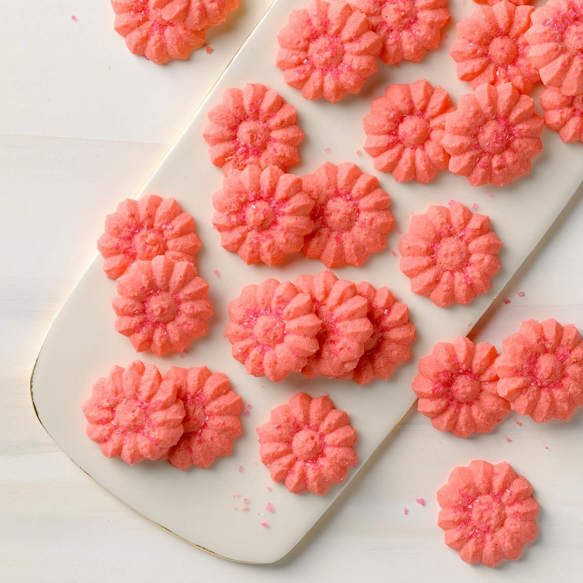 Here’s a sure standout on your treat tray. The cheery cookies get their bright pink color from cranberry-flavored gelatin. —Kristen...