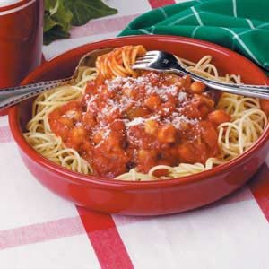 Lean turkey sausage links spice up this hearty sauce that turns pasta into a splendid main dish. "I blend a...
