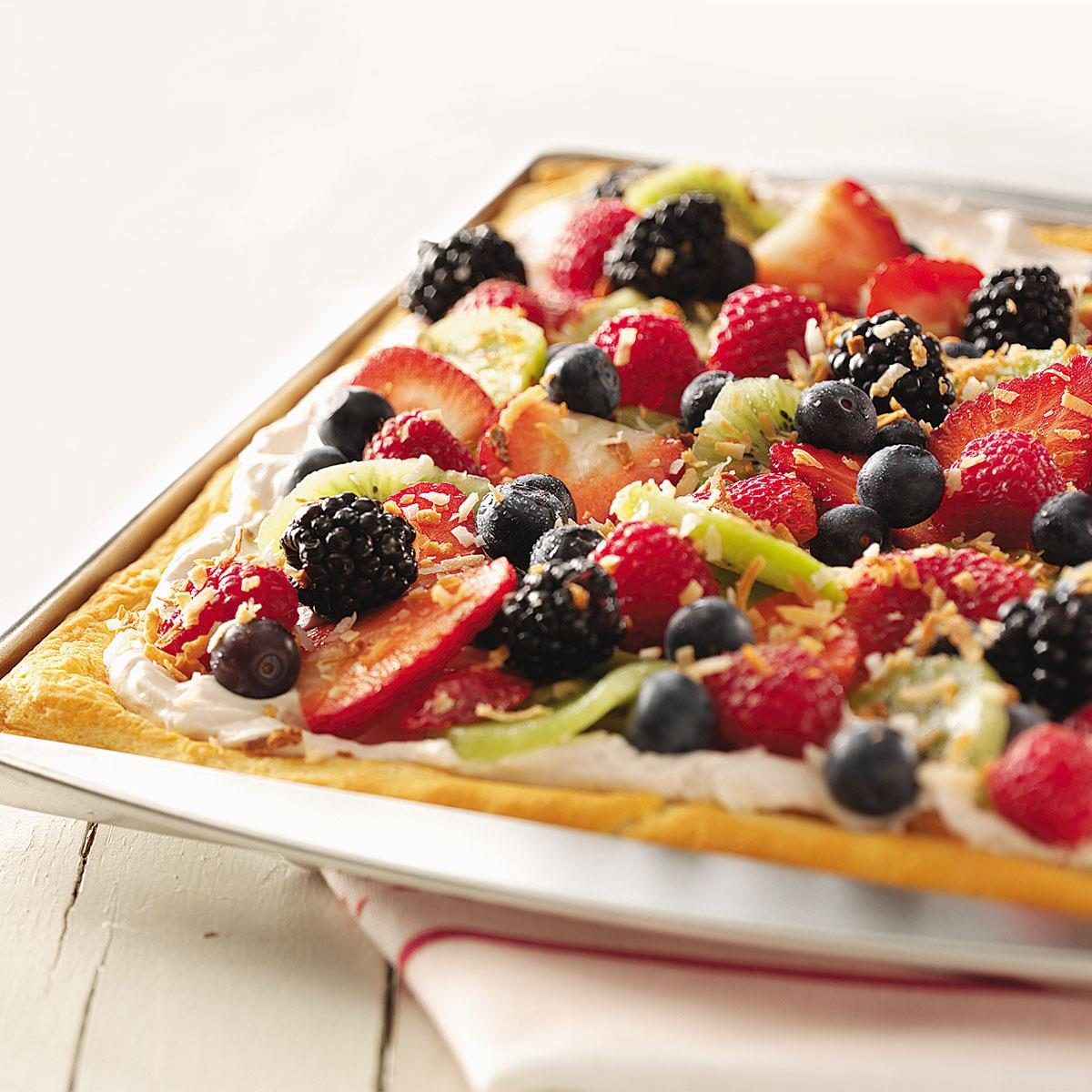 The fresh fruit shines through in this colorful dessert pizza. It's also a tempting appetizer at parties because it's a...