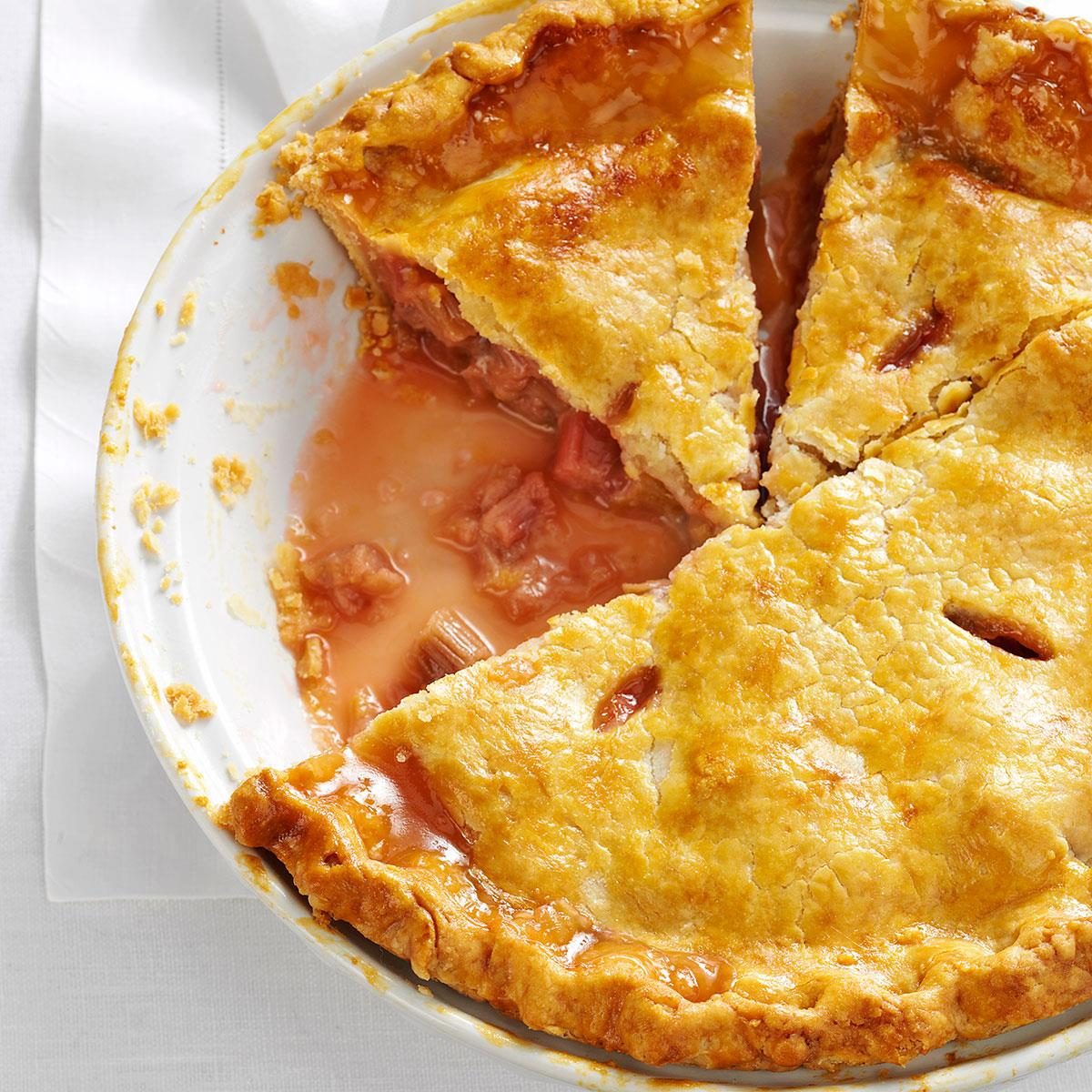 Nothing hides the tangy rhubarb in this lovely pie, which has just the right balance of sweet and tart. Serving...