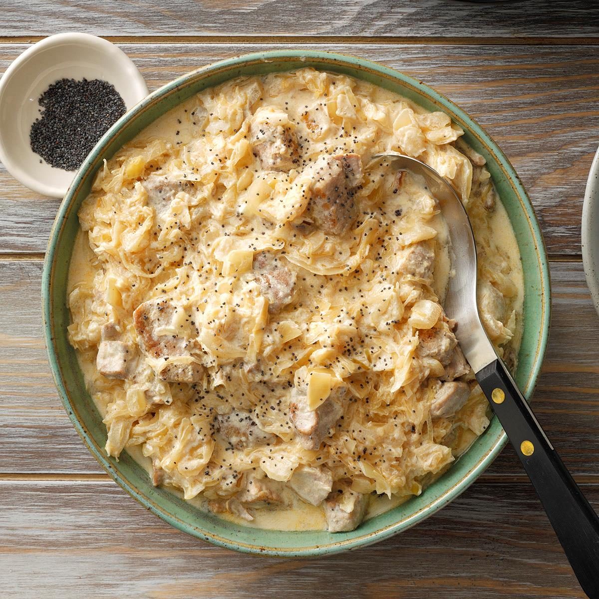 This combination of pork, sauerkraut, sour cream and paprika is heavenly served on buttery egg noodles with or without poppy...